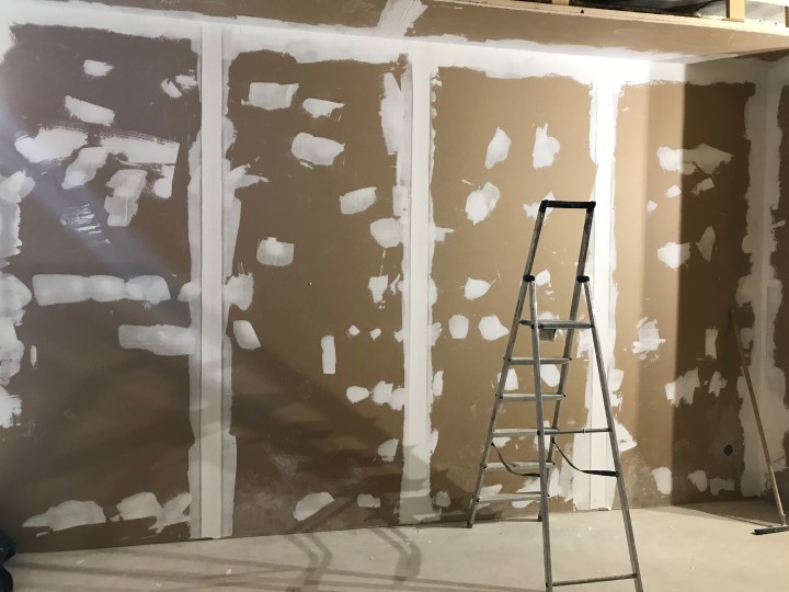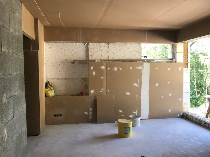 Yksi rakennusurakan pisimpään jatkuvia vaiheita on sisäpintojen viimeistely. Elämä on yhtä kittaamista ja hiomista ja kittaamista ja hiomista jne. Tässäkin omat taidot hioutuvat ja jossain vaiheessa alkaa valo häämöttää tunnelin päässä… Jos joskus ikinä koskaan rakennusprojektiin uudestaan ryhtyisimme, otamme suosiolla ammattilaiset asialle!