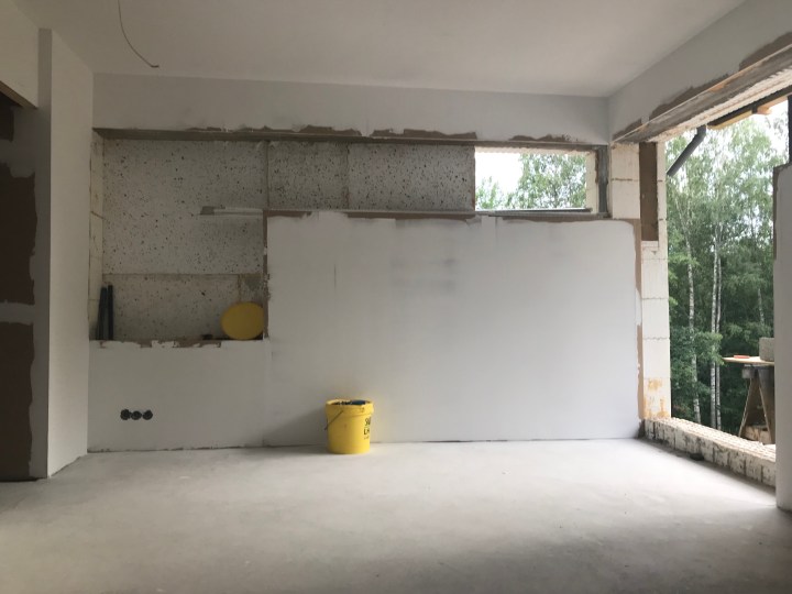 Poikien huoneesta kuva alla. Siellä pari harkkoseinää, joten vähän vähemmän kipsilevyjen käsittelyä.